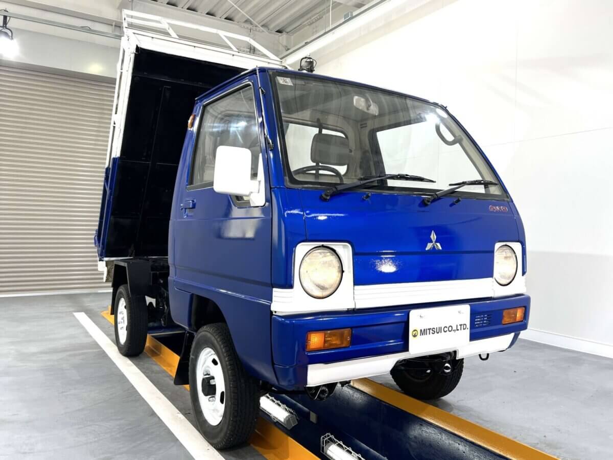 - Classic Mitsubishi Minicab Dump Truck – Charming Royal Blue Two-Tone Design