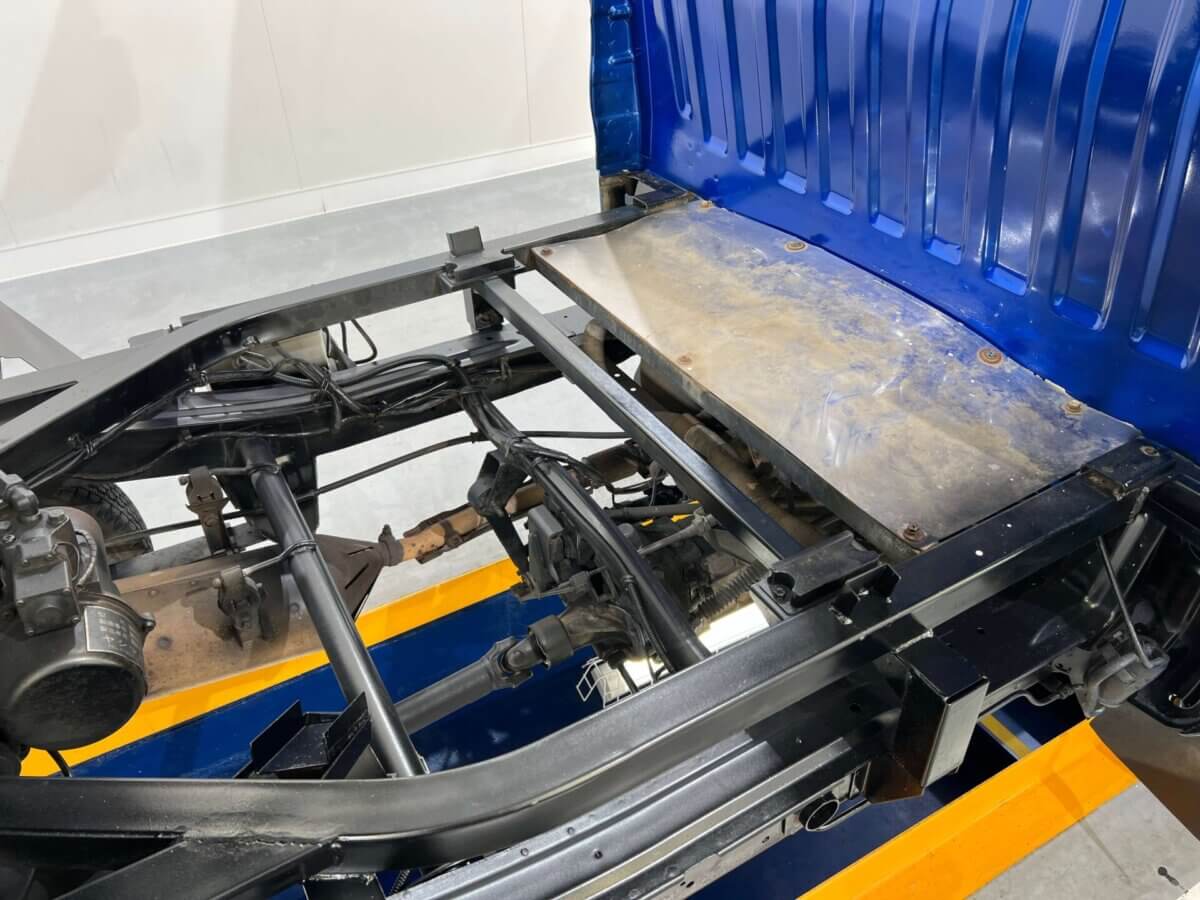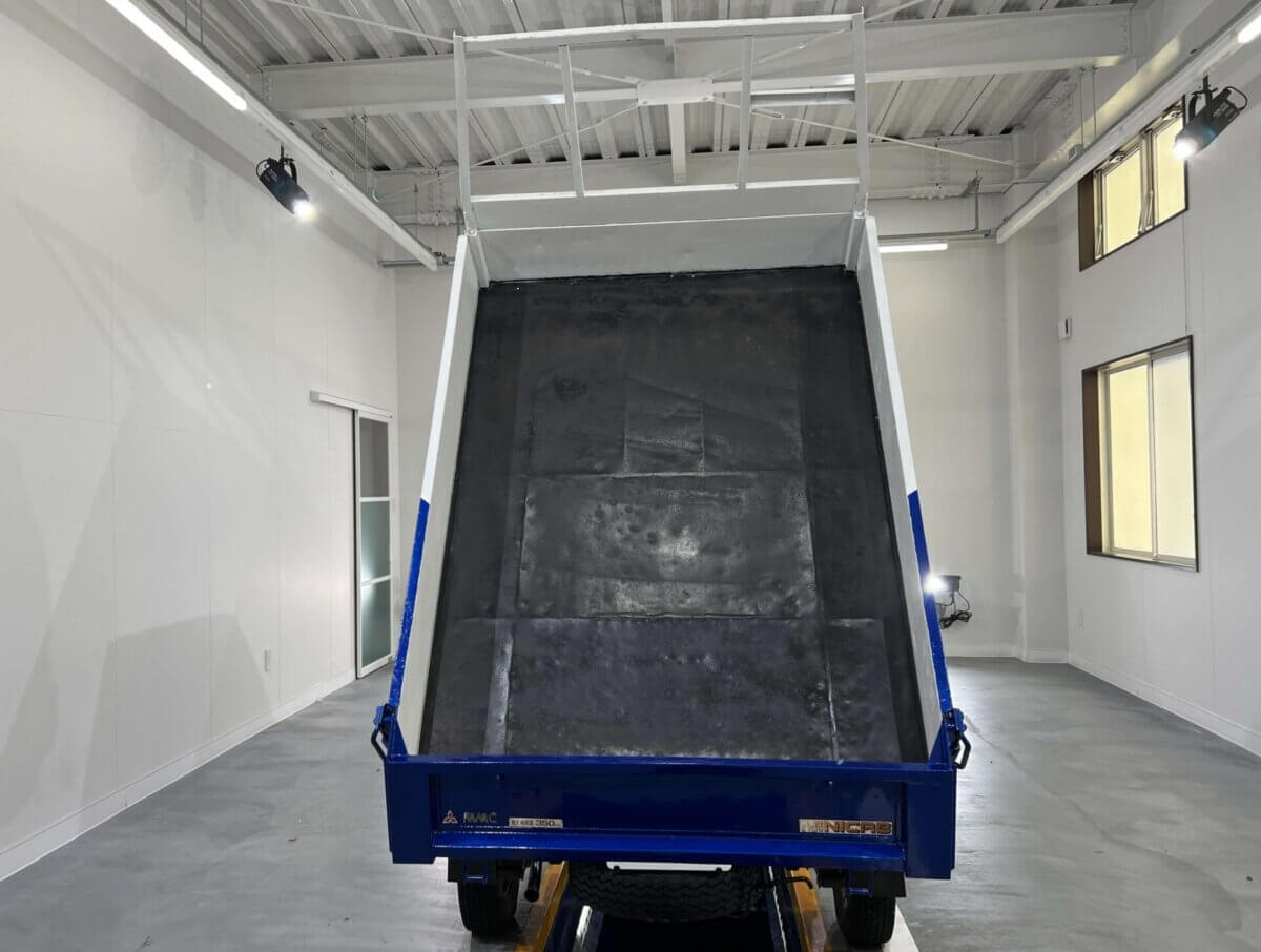 - Classic Mitsubishi Minicab Dump Truck – Charming Royal Blue Two-Tone Design