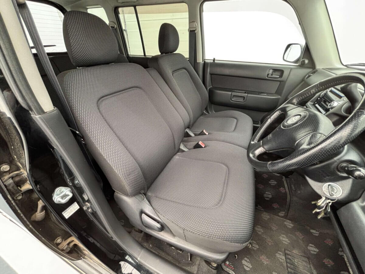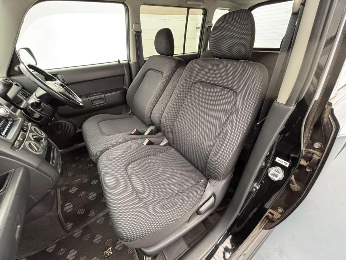 - GET CLOSER. DRIVE DIFFERENT. Toyota bB – Shine Black Column shift. Open front seat. Roomy enough to relax — close enough to feel it. This is JDM with attitude.
