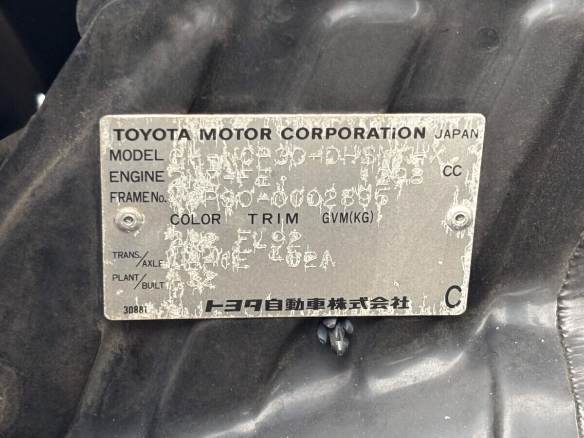 | Model Code | GH-NCP30 | VIN | NCP30-0002895 |